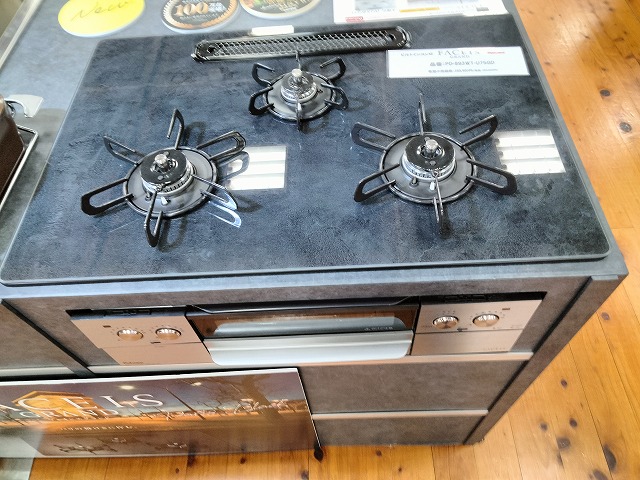 こんにちは、高橋です。 パロマのビルトインコンロ、フェイシス グランドのご紹介です。 こちらのコンロには、私のオススメする3つのポイントがあります。 ①スモークカットグリル グリ・・・
